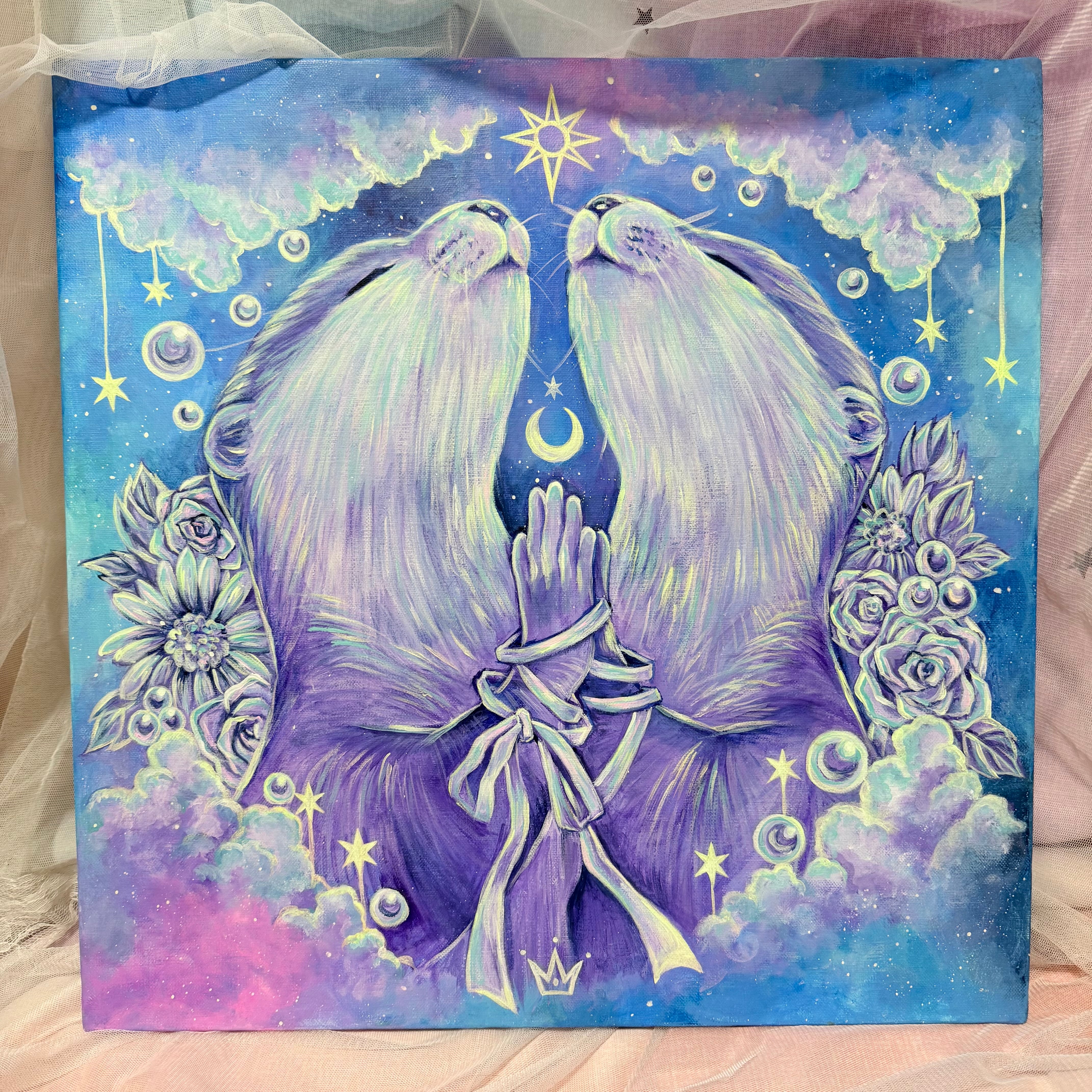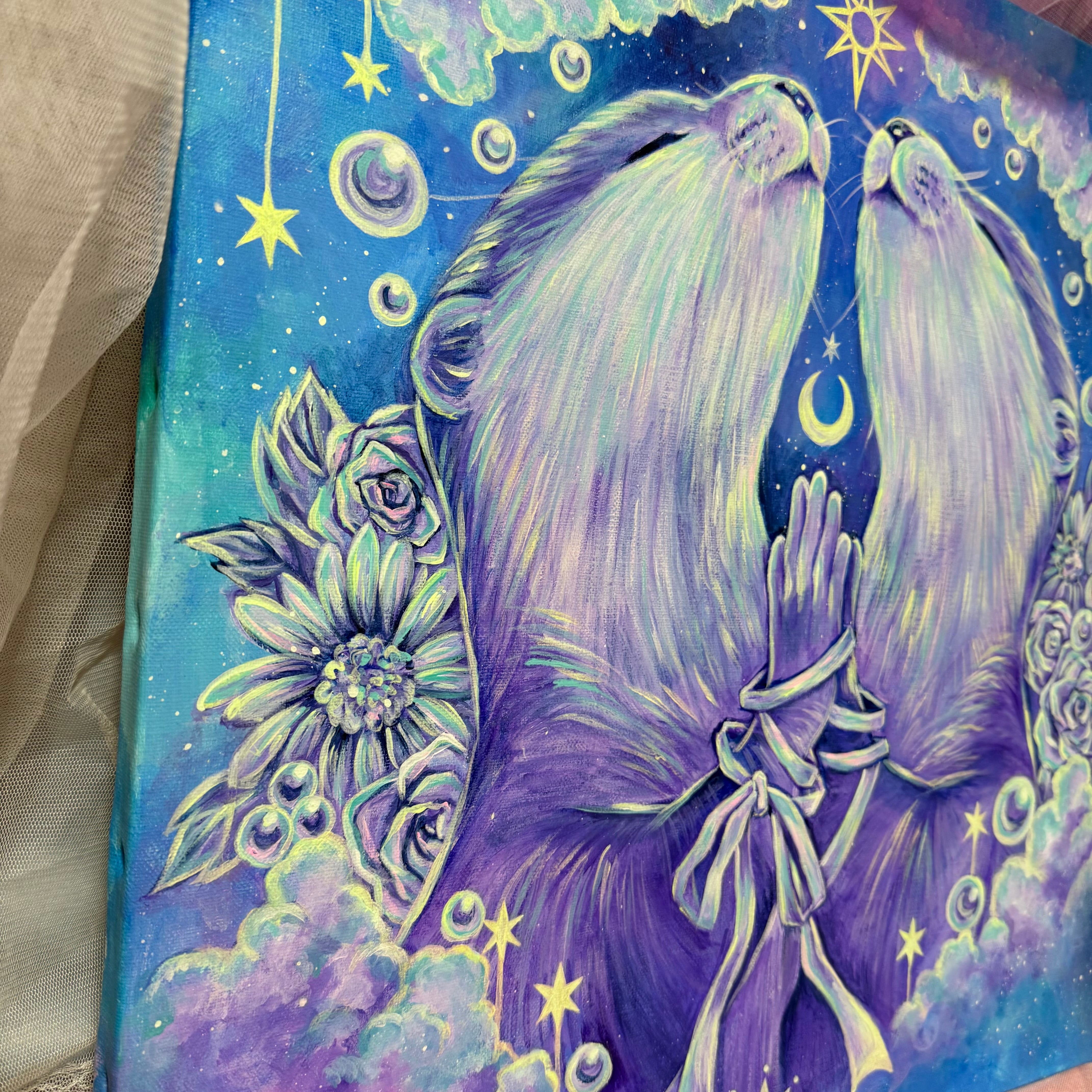 【アート原画】祈りあうカワウソ 1点もの アクリル画