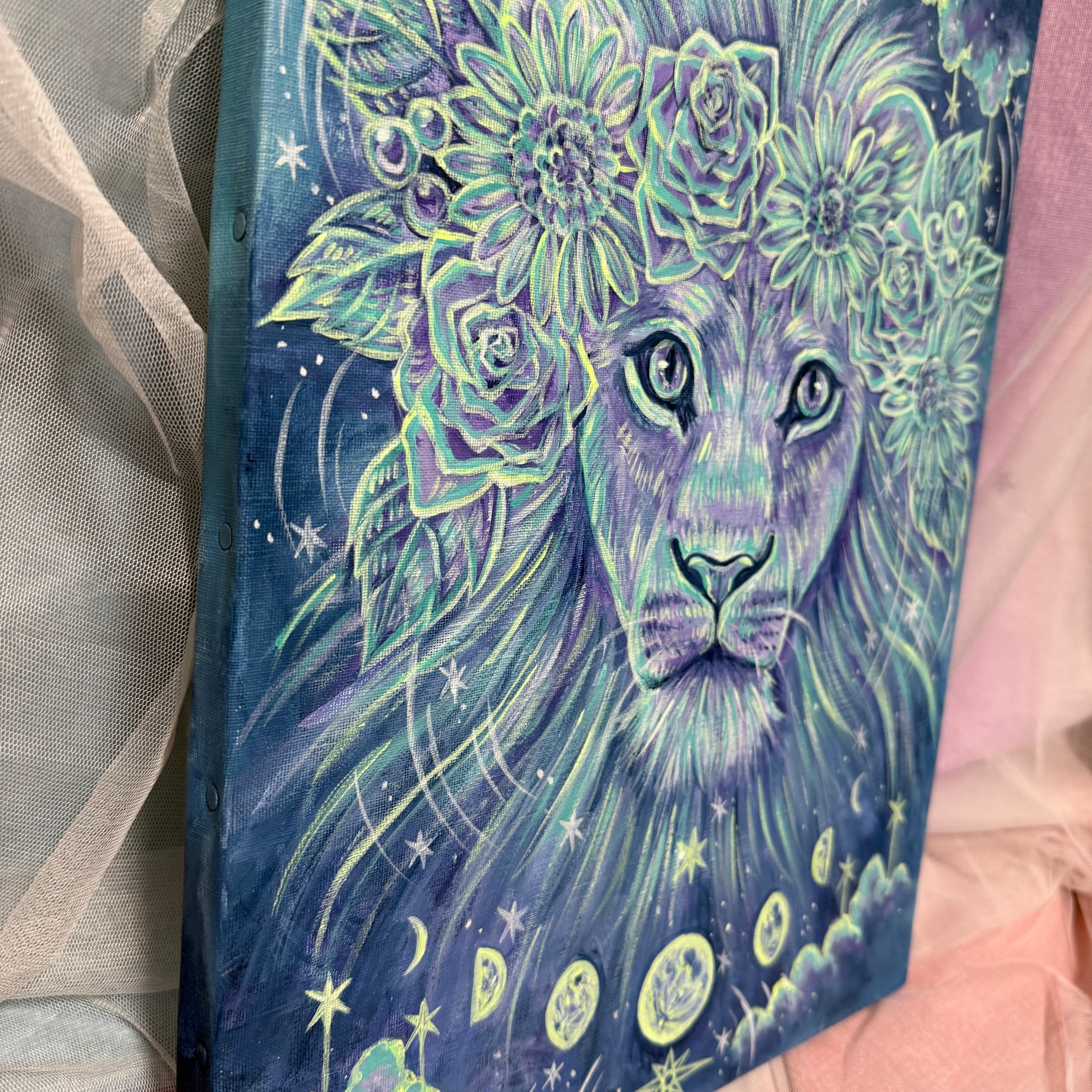 【アート原画】才能が咲き誇るライオン 1点もの アクリル画