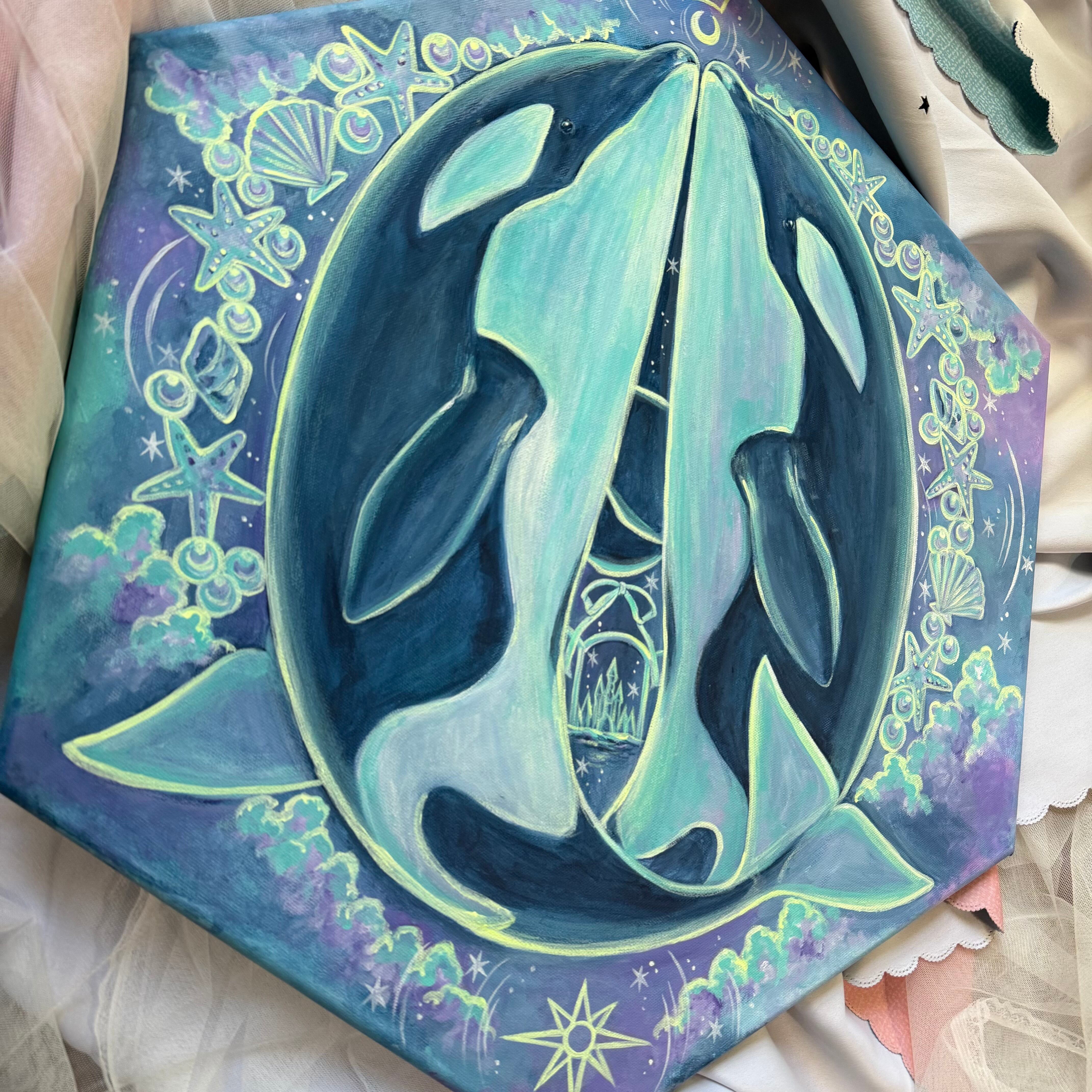 【アート原画】どこまでもいける シャチ 1点物 手描き アクリル画 六角形