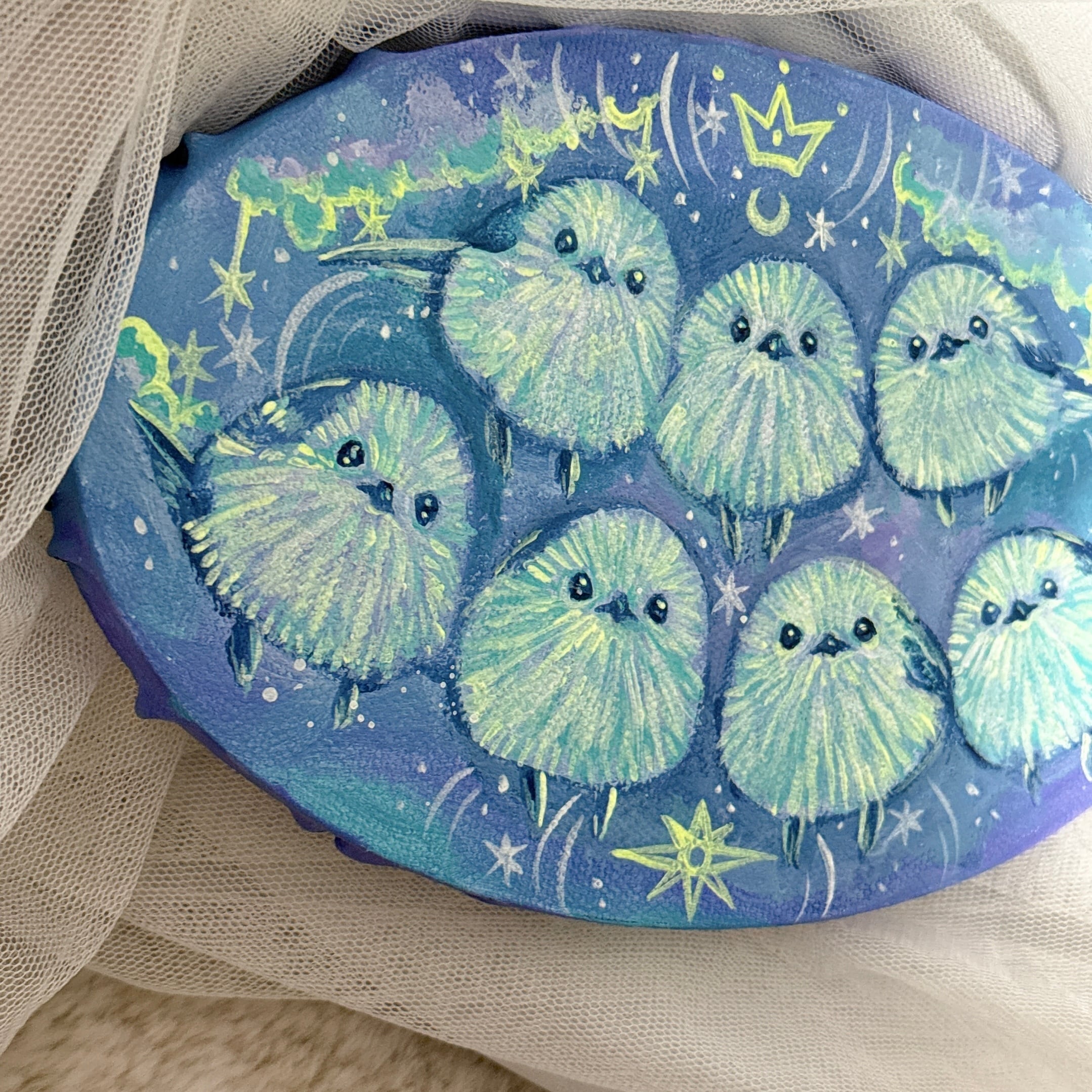 【アート原画】シマエナガ7羽 1点物 手描き アクリル画