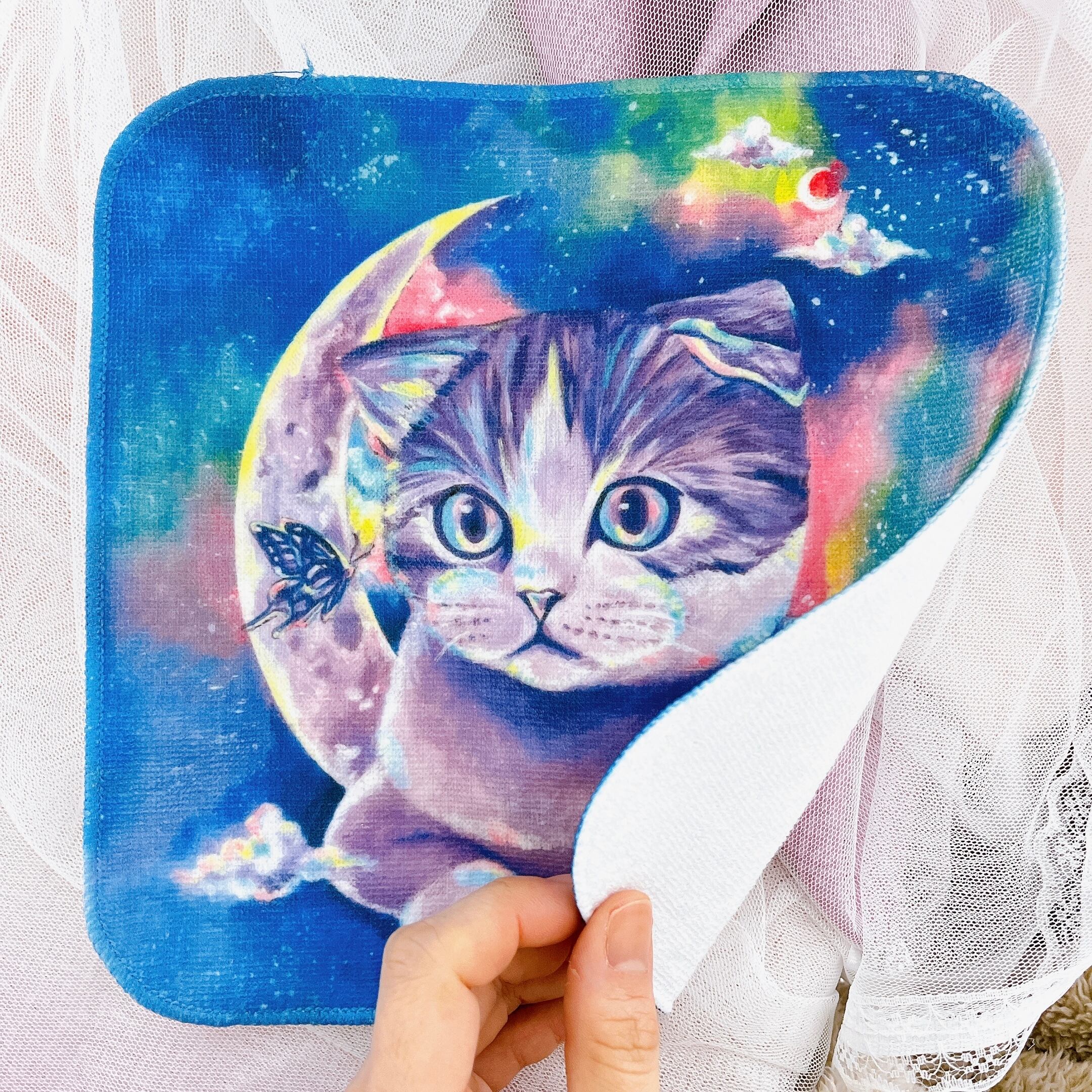 【ハンドタオル】ねこ 持ち歩けるアート 200mm×200mm